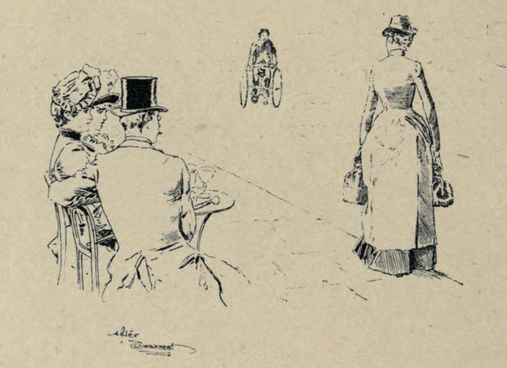 To travellers eager for sentiment, nothing could have been more vexatious than the delay at the Custom-House, where the tandem was weighed, its wheels measured, and its number taken; and we were made to deposit fifty francs, three-fourths of which sum would be returned if we carried the machine out of France within three months, the[20] remaining fourth going to pay the Government for our wear and tear of French roads.—There was another delay at the Hôtel Meurice while a room was found for us, and a femme-de-chambre insisted upon Madame’s going to bed at once, because of the terrible wind that had prostrated two English ladies. But, finally rid of officials and femmes-de-chambre, we walked out on the street.