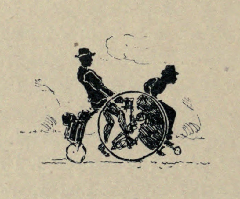 OUR great ambition when we first set out on our tricycle, three years ago, was to ride from London to Rome. We did not then know exactly why we wanted to do this, nor do we now. The third part of the journey was “ridden, written, and wrought into a work” before the second part was begun; and, moreover, when and where we could not ride with ease—across the Channel and over the Alps, for example—we went by boat and train. In our simplicity we thought by publishing the story of our journey, we could show the world at large, and perhaps Mr. Ruskin in particular, that the oft-regretted delights of travelling in days of coach and post-chaise, destroyed on the coming of the railroad, were once more to be had by means of tricycle or bicycle. We can only hope that critic and reader are not, like Mr. Ruskin, prepared to spend all their best “bad language” “in reprobation of bi-tri-and-4-5-6 or 7-cycles,” and that the[vi] riding we found so beautiful will not to them, as to him, be but a vain wriggling on wheels. We also thought we might prove to the average cycler how much better it is to spend spare time and money in making Pilgrims’ Progresses and Sentimental Journeys than in hanging around racetracks. However that may be, we have at length accomplished the object of our riding, and that is the great matter after all. As to future rides and records, if we make any, it is our intention to for ever keep them to ourselves, and so—spare the public.[vii]