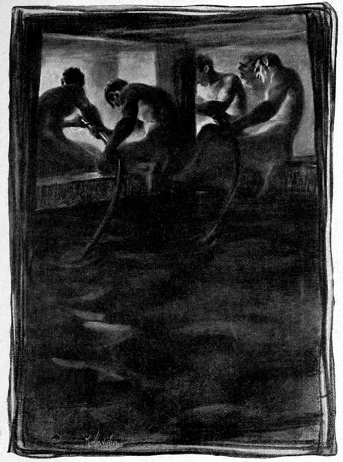 But they had not gone. There was an answering tap from the other side of the metal; a bolt squeaked and grated; and then the bulkhead door[Pg 23] swung back on the empty coal bunker and the faint glow of a furnace in the stoke hole.