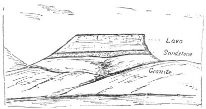 At the north end of Jacumba Valley, and on the west side of the outlet, is an area of volcanic rock, probably basalt. It forms a table-land, gently sloping toward the valley, and rising 600 or 700 feet at its northern end. It is underlaid by gravels and conglomerates. Just east of this is a black butte, rising perfectly symmetrical to the same height. It consists of bedded lavas, with tufa at the bottom. In spite of the 11 fact that it is shaped like a crater, its structure is different, and it is probably a remnant of the flow which once covered the outlet to the valley.