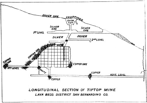 Other mines of the vicinity are the Topeka, Union, Escondido, King of the West, and Santa Clara, each of which has seen better days. The first three mentioned have been large producers, but are worked down to the water line, and a base ore proposition now faces the owners in the form of iron pyrites.