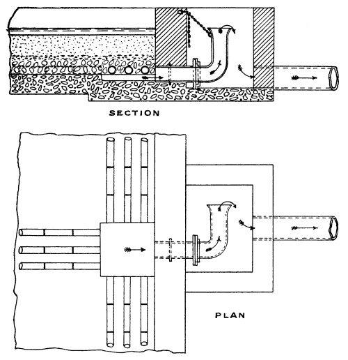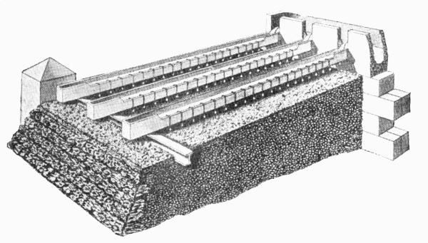 In other works dealing with this subject it has been customary to use as illustrations, drawings of works actually carried out by their authors or other engineers. While these are interesting and valuable to a certain extent, their application under other conditions is limited, and their usefulness is thus much reduced. In the present volume the illustrations of the various details of construction do not, as a rule, represent actual working drawings adapted to any particular set of conditions, but are shown in diagrammatic form for the purpose of serving as suggestions to engineers in search of ideas which they can adapt to meet the requirements of any particular scheme upon which they may be engaged. It will follow that the engineer must in all cases rely upon his own practical experience and judgment in deciding to adopt any of the various methods of design and construction illustrated and described in the following pages; and it may be found that a combination of several types, or even a combination of several details of different types, combined with practical experience and mature judgment, will frequently produce the most suitable and efficient scheme.