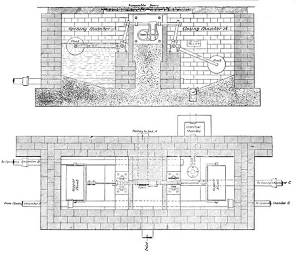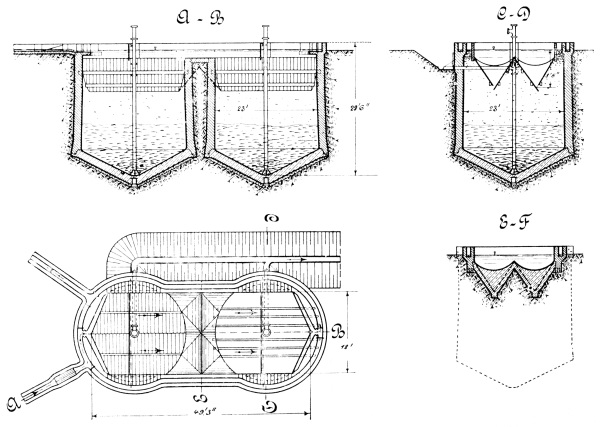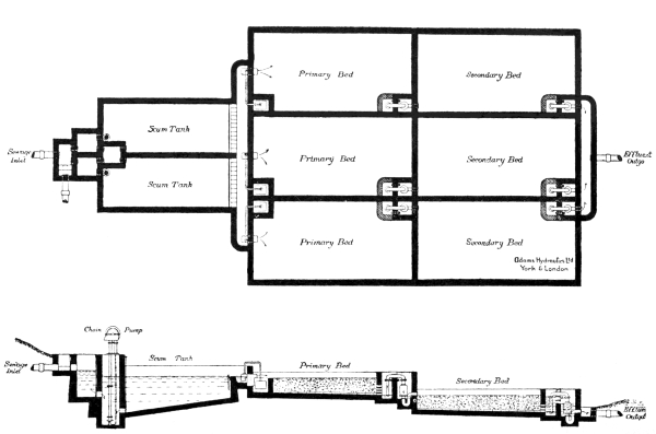 In order to avoid a repetition of the usual preliminary details to be found in all the existing literature devoted to this subject, it is assumed that readers are acquainted with the nature of the problem to be solved in the design of sewage disposal works, with the varying characteristics of the different liquids included under the term “sewage,” and with the engineering formulæ and requirements involved 2 in the design of tanks, filters, and similar constructional works. The present volume will thus consist exclusively of descriptions, illustrated with drawings and photographs, of the various tanks, chambers, filters, beds, and other details of sewage works, including the numerous types of appliances required in connection therewith.
