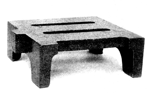 Fixed Weirs.—Even this ingenious method of diversion is, however, not accurate, as no provision is made to counteract the effect of the increased head on the outlet from the chamber, due to the backing up of the sewage in passing over the weir. Where a fixed weir is alone permissible, the only really satisfactory method of securing the desired result, is to increase the width of the overflow weir to such an extent that the maximum depth of storm-water, which may possibly flow over the weir, is reduced to the minimum, say one inch, and thus the effect of this head on the normal outlet from this chamber (i.e. on the inlet to the detritus or sedimentation tanks) is also reduced to the minimum. This will necessitate careful consideration, and a special set of calculations in each case. Where it is found that the execution 18 of the above suggestion involves the construction of a weir of abnormal and unpractical width, it will be found convenient to arrange the normal dry-weather outlet from this chamber in the form of a narrow vertical slot, which can be most easily provided in a simple door or 19 stop in a grooved frame, fixed in the outlet from this chamber. Fig. 10 shows an example of this slotted door, and when the correct width of the slot has been ascertained by actual experiment, the door should be bolted to the frame, so that it cannot be removed or altered by any unauthorised person. From the drawing it will be seen that it is not difficult to calculate the dimensions of the slot orifice, so that with the head due to the height of the storm overflow weir it shall discharge 20 the desired volume (say three times the dry-weather flow), and if the width of the overflow weir is then calculated to take the excess volume with a depth of one inch of water over the weir, this extra one inch of head will have very little effect on the discharge through the slot outlet.