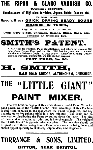 The Composition of a Paint—Pigments, Oil, Turpentine, Driers, Colours—Practical Paint Mixing, Mechanical Paint Mixer—Paint Strainer—The Proportions of Materials for use on Pine and Soft Woods—On Hard Woods generally—On Iron—On Stucco—On Plaster, etc.