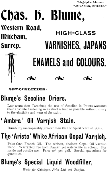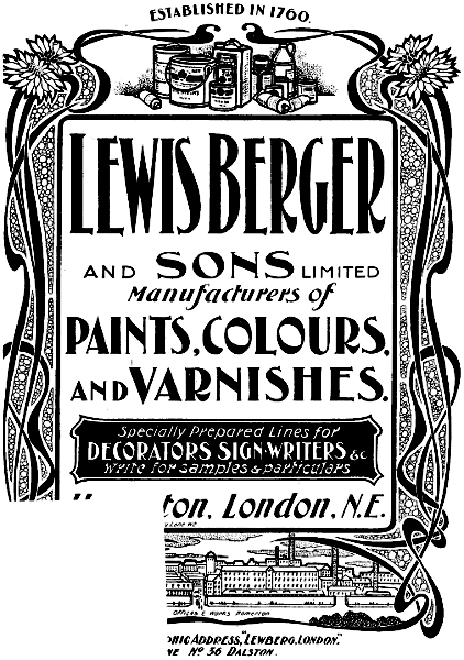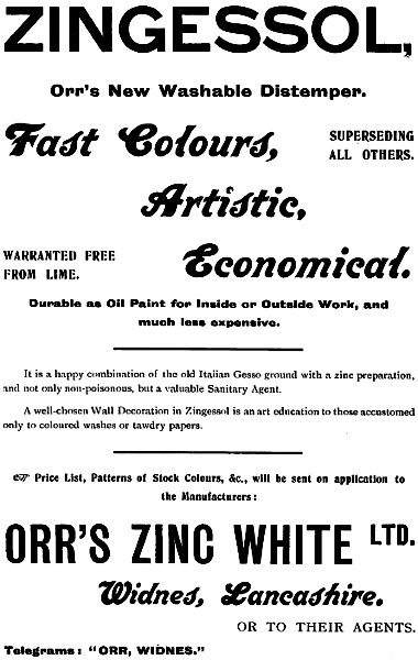 Manufacturers of the Celebrated “Non=Poisonous Colours” in rich and delicate neutral tints, for High=Class Decorations.