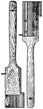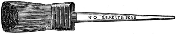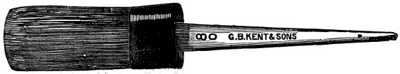 A very handy little tool for breaking up oil paint when mixing in a can instead of using a stick is shown in Fig. 4 (see next page). Its shape enables it to be used also as a scoop or spoon for lifting the colour out of the kegs, etc. The patentee and manufacturer is H. Smith, Hale Road Bridge, Altrincham, Cheshire. The illustration shows both sides of the tool. The projection on[12] the left hand of the carved blade is provided in order to reach beneath the rim of lever-top cans.