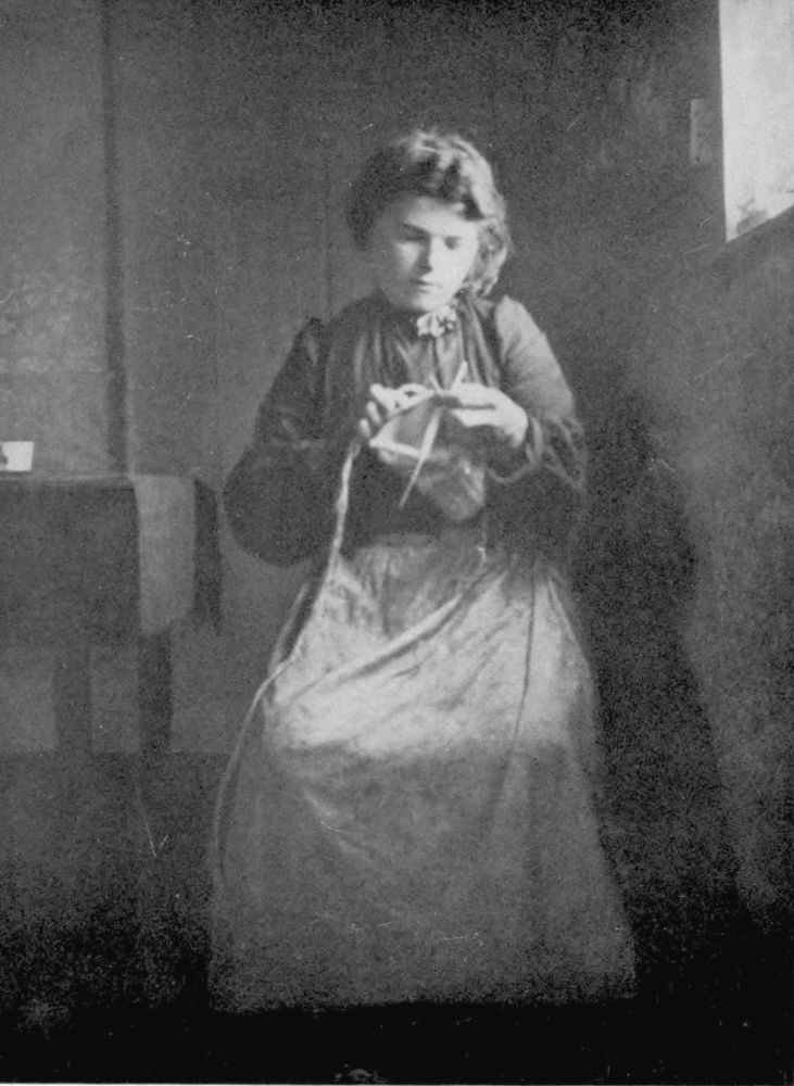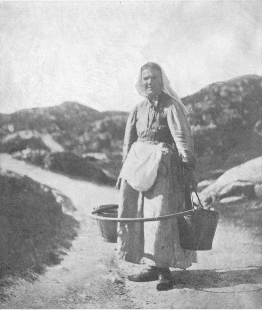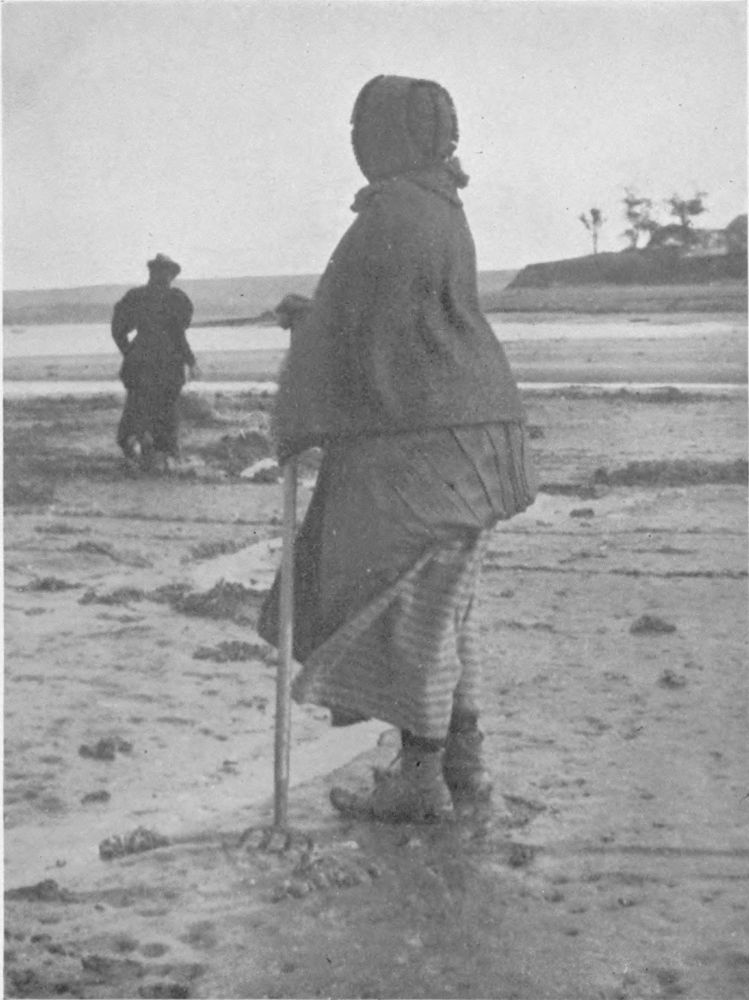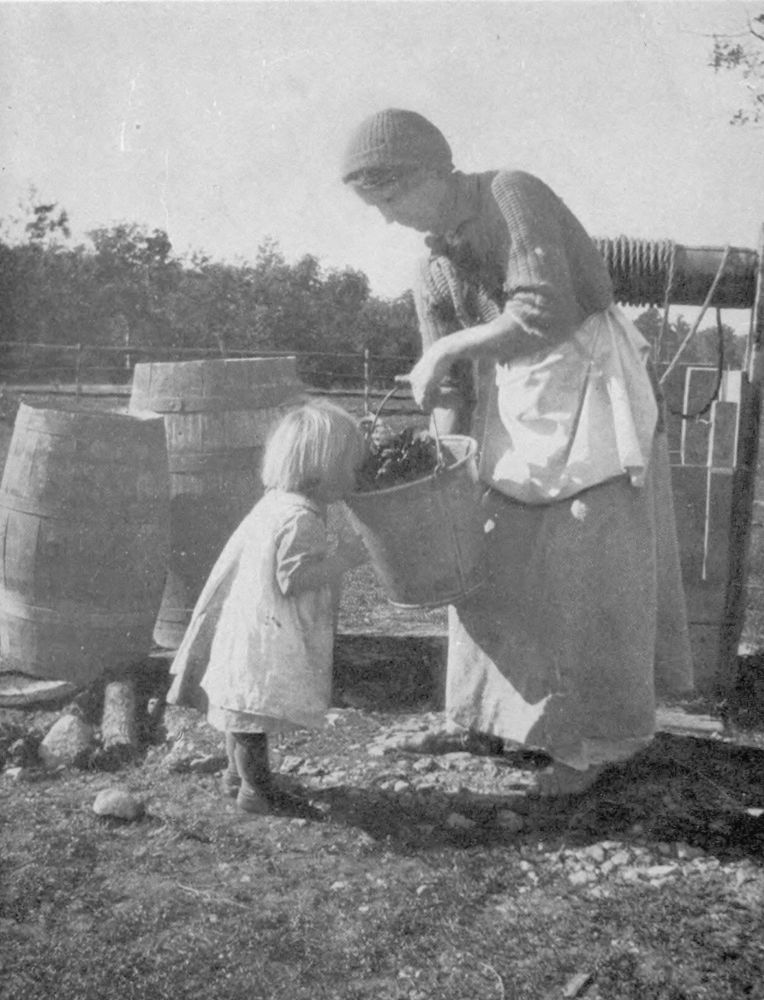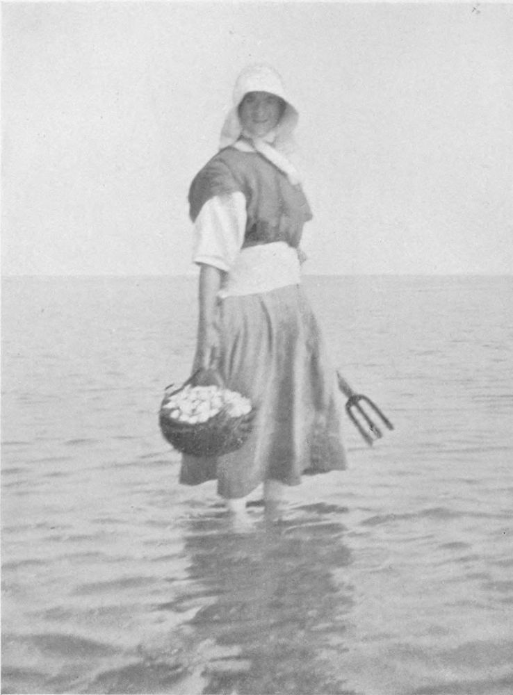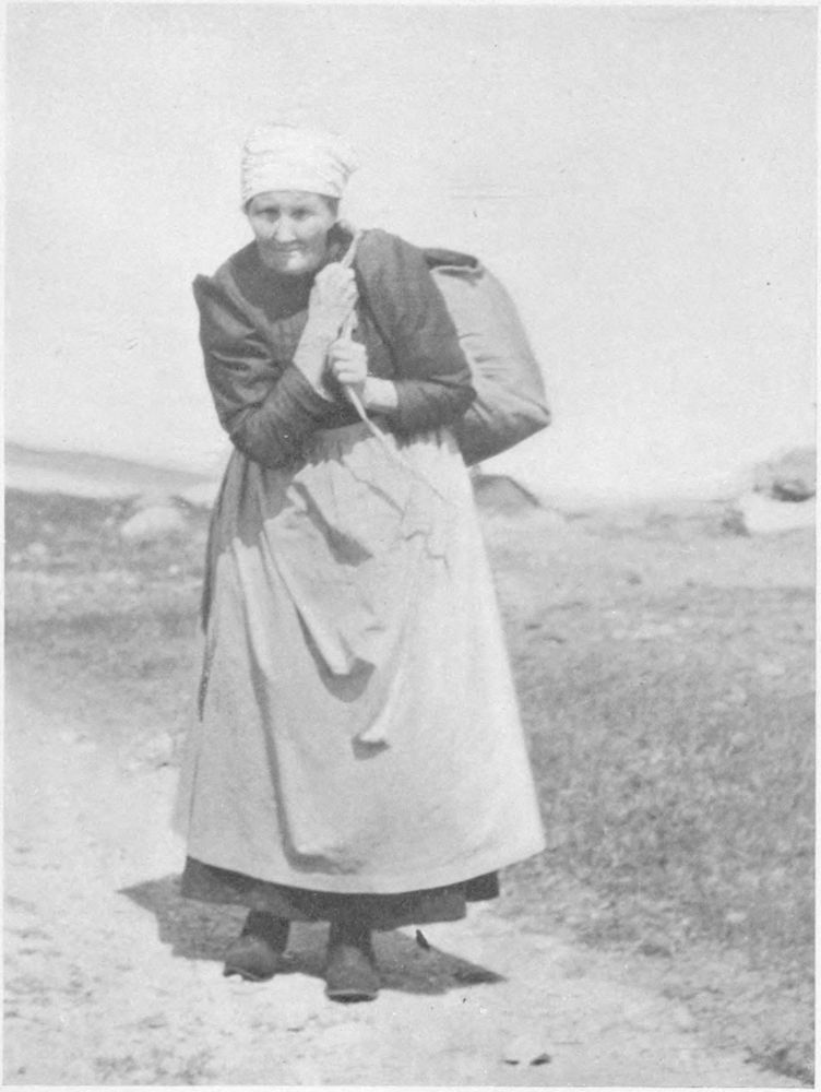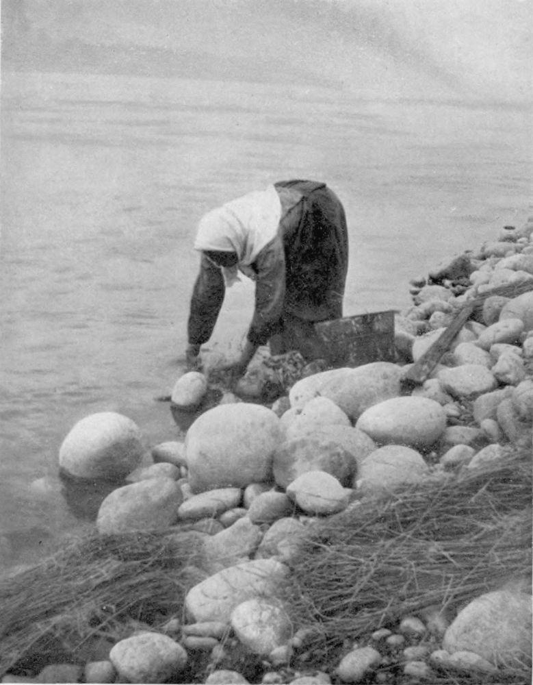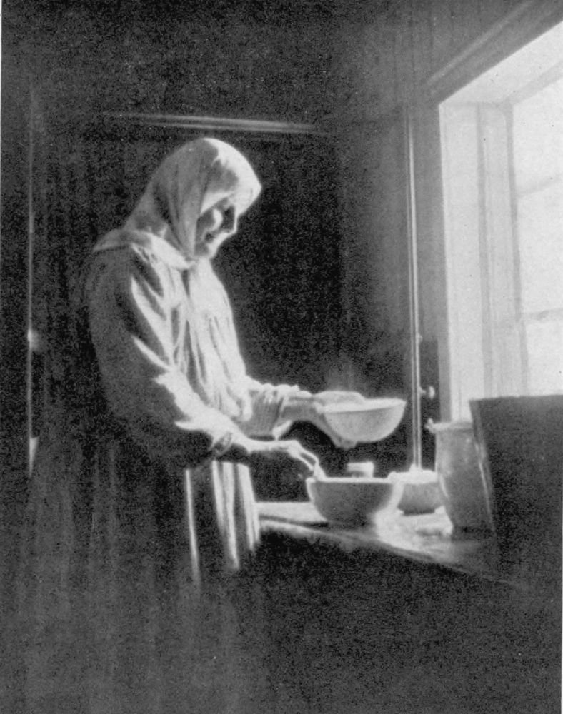 of a shower. These women turn easily to housekeeping duties, and often the out-of-door tasks accomplished, continue the web of romance with knitting, spinning and hooking rugs.