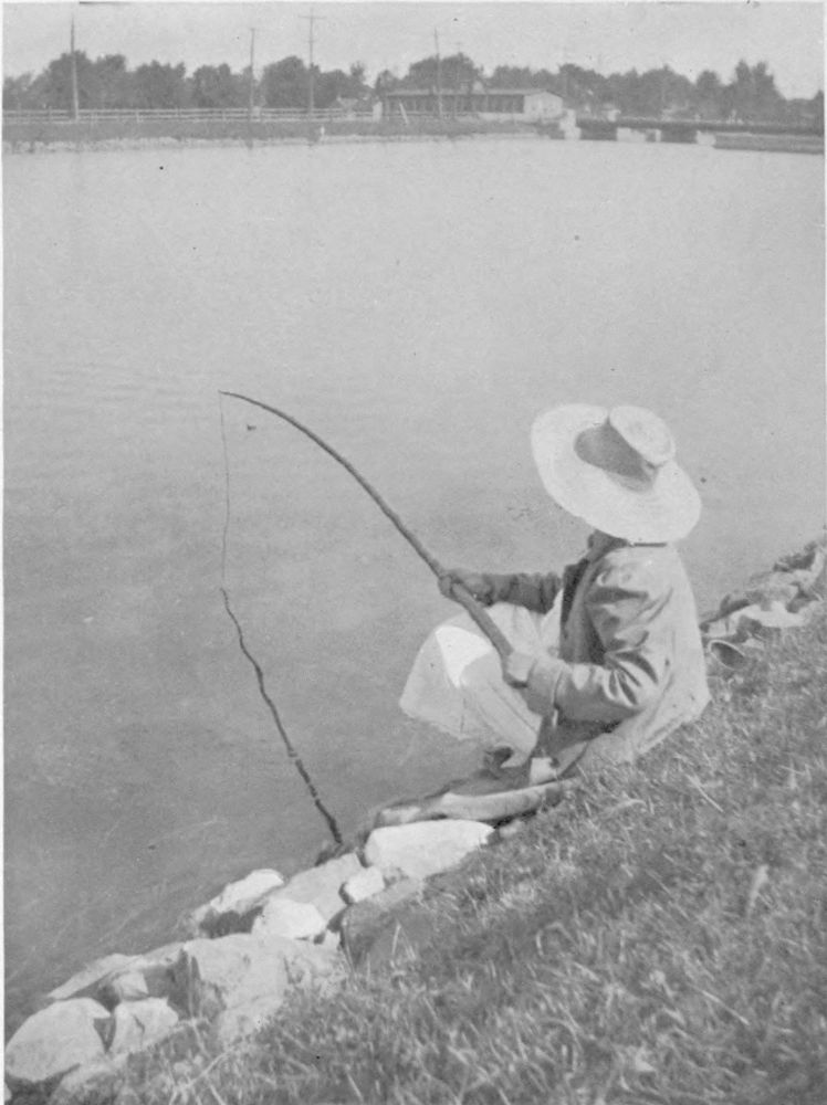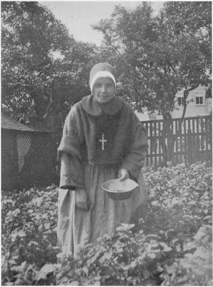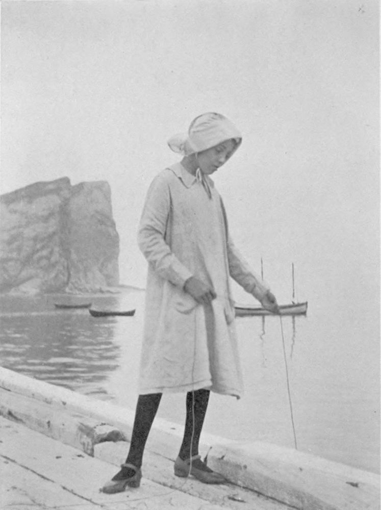 One summer, visiting with the Lighthouse-keeper’s family in their characterful little binnacle-home on the edge of the rocks at Peggy’s Cove, our last day for adventuring having arrived, and even as we waited for the coming of the mail-carrier’s cart by which we had engaged “outward passage”, we strolled down to the waterfront to say a last farewell to our “old-timers”. It was at that last moment, in what turned out to be the eleventh hour of his life, that we chanced upon a ninety-year-old grandfather in high boots and straw hat placidly catching up with his nonogenarian fingers the broken meshes of an old net. Mailcart or not, we must have this picture! Click! As it happened, mending this bit of net was his last task. For before the picture which we promised to send back to him could come into his hand, the Great Reaper had brought him to his last illness and he was soon awa’!{21}{20}