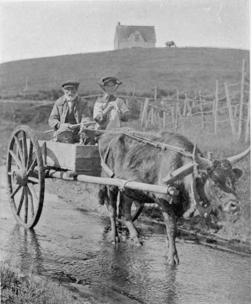 Sitting down by the roadside to rest, some old-timer driving a span of oxen and urging them along with an apple-bough goad, is sure to come along and enter into conversation in that happy way which is half the charm of adventuring by Nova Scotia highways. This old farmer-carter well remembers Harry Killcup, the Robin Hood-Jehu of the Post-road from Annapolis Royal to Halifax. He relates how Harry was talking to a girl and didn’t pay attention to his horses, and drove them too near the edge of the bridge and they fell over, dragging the coach with them. “The river was in flood, too, but Harry managed to get the girl clear{6} of the wreckage, and saved her, but the young man, with whom she travelled, was drowned.” It sounds like a movie stunt in the cold light of to-day, whereas, in fact, it was Victorian realism and a typical incident of the dashing times of the chaise in which Sam Slick engaged a permanent seat in that other “chaise of Canadian literature” by which Judge Haliburton eventually established his name in Canada’s Hall of Fame. The events live very graphically before you as recited by this old eye-witness; who, with many a “gee” and “whoa there”, again starts his oxen on the way.