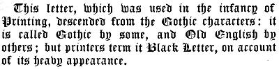 The character itself was a rude old Gothic (similar to that now known as Old English or Black) mixed with Secretary, designed to imitate the handwriting of the times; the words were printed so close to one another that the matter was not easily read.