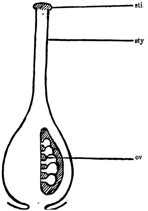 Pistil. sti, stigma; sty, style; ov, ovule. After Bergen.