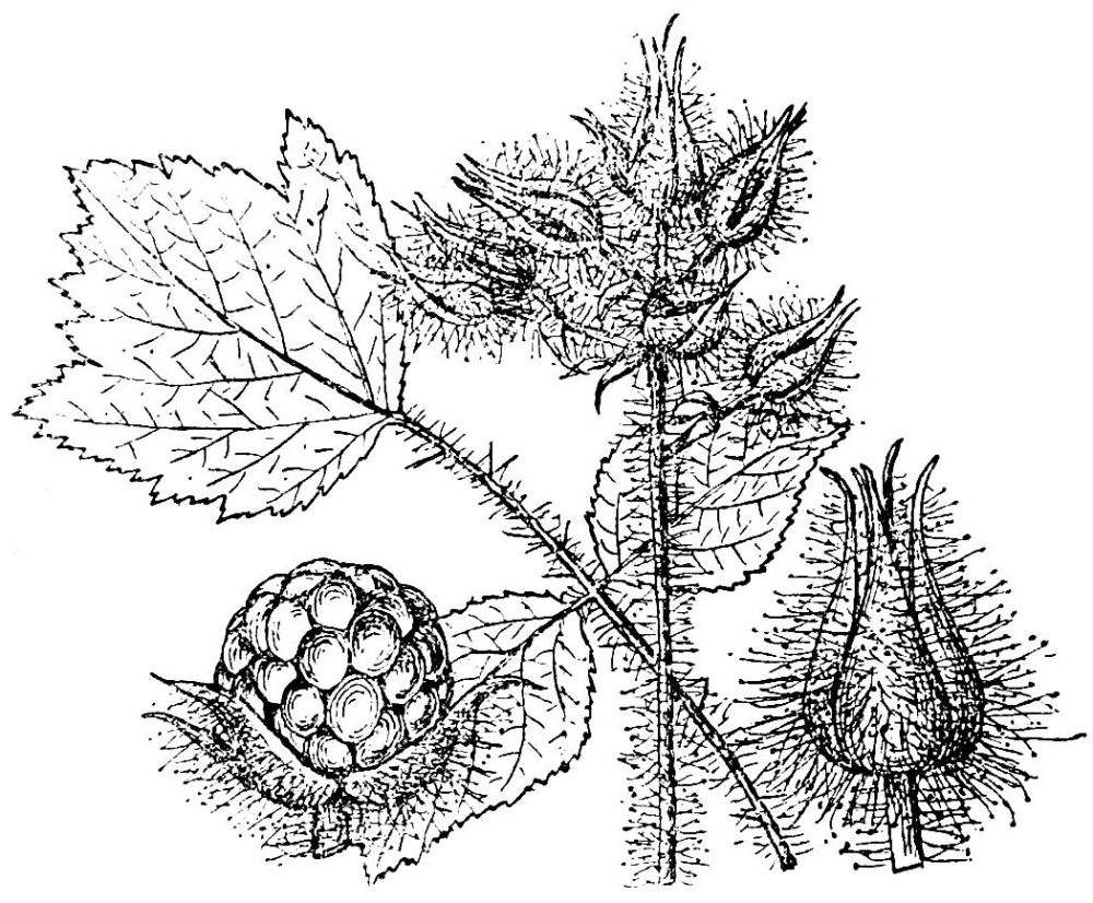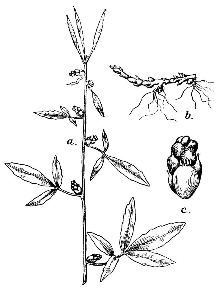 a, Plant, 2/3; b, male flower; c, female flower, both enlarged.