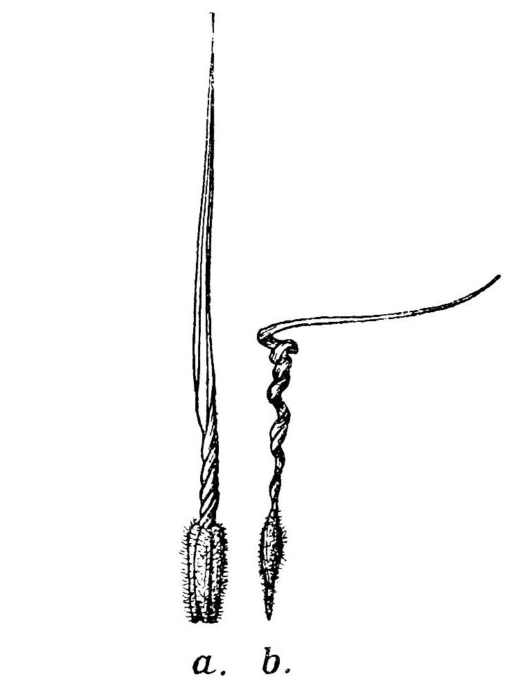 The migrations of plants are effected mainly during the seed stage, these tiny, tightly packed portmanteaux being much better fitted for travel than the bulky and fragile organisms to which they give rise. But before we consider the adventures of seeds it must be pointed out that a considerable, if slow,{53} migration of plants takes place by mere vegetative growth. The stems of many species are not erect, but prostrate; creeping upon or below the ground, they may in time cause a plant to spread far beyond its place of origin. A whole field, or for that matter a whole hillside, of Bracken (Pteris Aquilina) may quite possibly have originated from a single wind-borne spore. Among Sedges and Grasses this mode of growth is common—as we know to our cost in the case of the Couch-grass (Triticum repens)—and it is found in varying form in many kinds of plants, as in the suckers of trees, the offsets of bulbs, the runners of the Strawberry (Fragaria); it is especially characteristic of marsh and water plants. Its effect is to produce large colonies, such as the great beds of Reeds (Phragmites) or Reed-mace (Typha) which fringe our lakes, the groves of Bent (Ammophila) on sand dunes, and the beds of Anemones (A. nemorosa) or Broad-leaved Garlic (Allium ursinum) of our spring woods. In all these cases the whole colony may be the result of the continued growth of a single individual. It should be noted, however, that such migration is possible only so far as favourable soil conditions extend. A slight barrier—a streamlet, a patch of ground too wet or too dry, will arrest further progress, and the plant must fall back on seed-dispersal in order to conquer further territory.