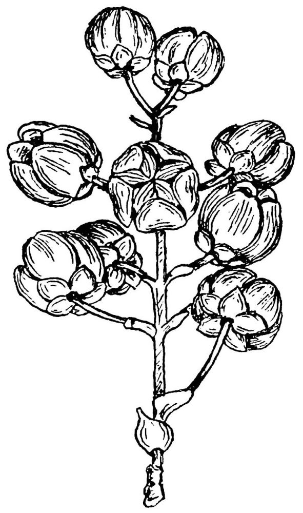 out through the open side. In the Cranesbills the jerk is so violent that seeds may be flung to a distance of twenty feet. One of the most efficient of all devices of this kind is found in the Sand-box Tree (Hura crepitans), a native of South America. By sudden rupture and twisting of the carpels of the woody sub-globular fruit, the large seeds of this plant are thrown to a distance of thirty yards, the explosion being accompanied by a report like that of a pistol-shot. In the common Dog Violet (Viola Riviniana) (Fig. 10) the fruit is a three-valved capsule, which on ripening divides; each valve assumes a horizontal position and its edges contract till it is shaped like an open boat, the seeds lying in a row down the middle. The sides as they dry close in tighter and tighter on the seeds,{59} which are in turn pinched out, and fly off with a little snap to a distance of many feet. It is an interesting experience to watch these tricks of Nature—much more interesting than merely to read about them. If plants of Vetch, Gorse, Dog Violet, Storksbill, Wood Sorrel, Touch-me-not (to name a few), bearing unripe fruit, be brought home and placed in water in a sitting-room, the click of the bursting fruits will be distinctly audible, and by spreading a white sheet the efficiency of the devices may be tested.