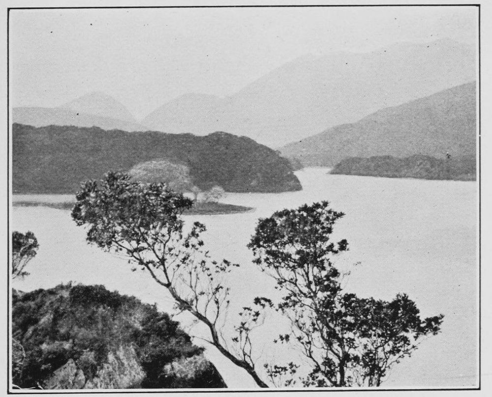 “I got up the mountain edge, and from the top saw the world stretcht out, cornlands and forest, the river winding among meadow-flats, and right off, like a hem of the sky, the moving sea.”—Maurice Hewlett: Pan and the Young Shepherd.