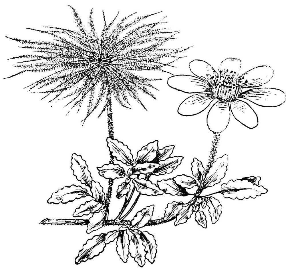 1. Action of the Parent.—The Ivy-leaved Toad-flax, or Mother-of-Thousands (Linaria Cymbalaria), is a pretty little plant, native in central and southern Europe, naturalized and common on old walls in this country. Its Snapdragon-shaped purple flowers are borne on short stalks which curve towards the light, placing the blossoms in a conspicuous position, where they may be the more readily visited by insects, and thus pollinated. But when flowering is over, and the little round fruit is ripening, the stalk twists so that the fruit is turned towards the wall and finally pushed into any convenient crevice: when the capsule opens, the seeds, instead of dropping to the base of the wall where on germination the young plants would be smothered among stronger growths, find themselves lodged in niches in which the young plants may develop successfully. Many water plants have flowers which rise into the air, following on which the flower-stem curves and the seed is ripened below the surface, free from the dangers of weather, of feeding water birds, and so on.