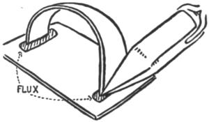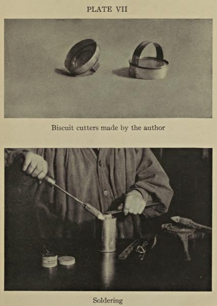 | PREPARING A JOINT FOR SOLDERING—CLEANING AND SCRAPING—SOLDERING A PRACTICE PIECE—SOLDERING THE HANDLE TO THE BISCUIT CUTTER—A SECOND PRACTICE PIECE—ANOTHER METHOD OF APPLYING SOLDER | ||