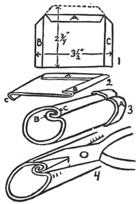 | THE PINE TREE DESIGN—CUTTING NARROW STRIPS OF TIN—BENDING TO SHAPE OVER DESIGN—SOLDERING COOKY CUTTERS—THE HANDLE | ||