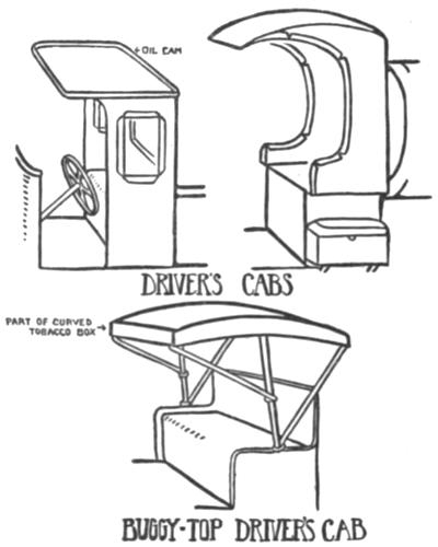 | THE STARTING CRANK—THE STEERING WHEEL AND COLUMN—MUD GUARDS AND RUNNING BOARDS—LIGHTS, TOOL BOXES, HORNS, ETC.,—DRIVERS’ CABS | ||
