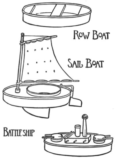 | THE ROWBOAT—THE SAILBOAT—THE SCOW—THE TUGBOAT—THE BATTLESHIP—THE FERRY-BOAT[15] | ||