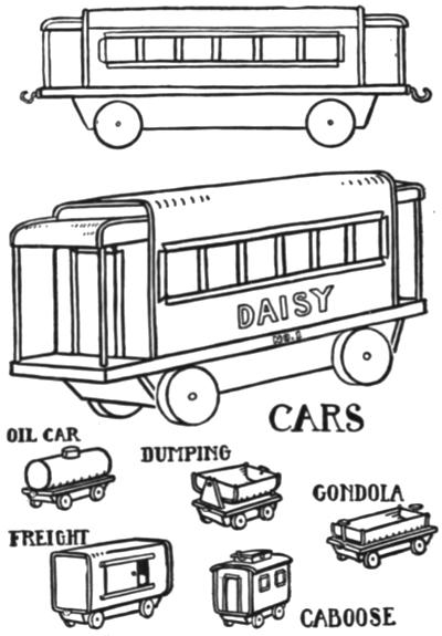 | THE FRAME—BOILER—CAB—WHEELS—CYLINDERS AND CONNECTING RODS—THE SMOKESTACK, STEAM DOME AND WHISTLE, SAND BOX AND HEADLIGHT—CARS—A PASSENGER CAR AND SOME OTHERS | ||