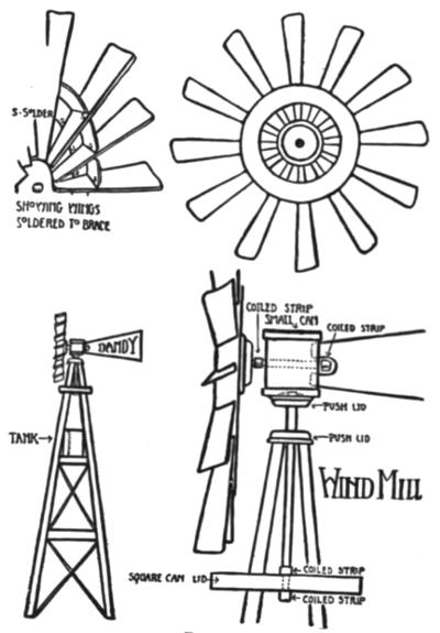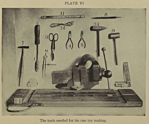 Aside from the pleasure derived from the actual making of tin can toys, perhaps the greatest[7] satisfaction lies in the fact that you are using material usually thrown away—making something out of nothing.