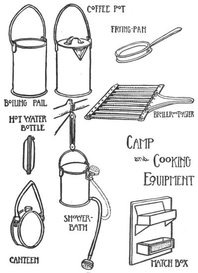 “Our first need was a charcoal furnace to heat[10] our soldering coppers. This was made from two large square tins with an interlining of brick. A bit of an old grate completed this perfectly good furnace which served us well for many months.