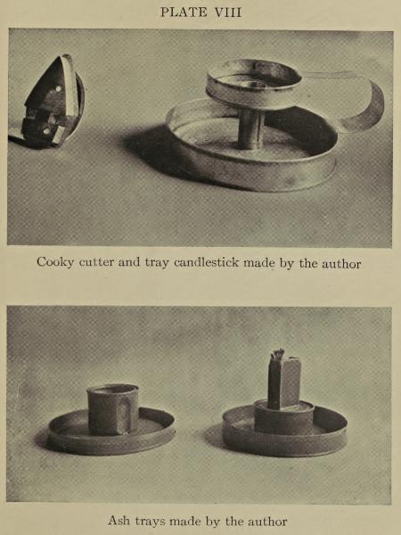 But the making of tin can toys is by no means limited to hospitals and schools. Any one who cares to tinker, to handle tools, to use up waste materials, may find pleasure and profit from assembling tin cans and parts of them. Many useful and attractive things may be made for the home, shop, or camp.