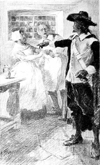I had nearly reached the middle time of life and knew by hard experience that when the future looks the darkest one is most likely to be near the light. This thought gave me fresh comfort and put new life into my step as I set out briskly along the shore of the cove. The wind blew strong in my face, and I had to bend over and lean upon it, as it were, to prevent my slipping upon the rocks. Whatever a misstep might mean to me, it would certainly bring misfortune, perhaps death, to one whom I loved better than myself a hundred times. So I picked my way carefully over the rough places, balancing myself upon the wind and setting my feet firmly when I came to rocks that were wet and slippery. By dint of much perseverance I made 3fair progress towards the lights of Gravesoon, for all it was so dark upon the shore. As I drew near the town I spied more lights, and at last I came to the lamp hanging over the doorway that betokened a house of public entertainment. I opened the door of the ordinary and went in. The room was quite deserted and I rapped twice upon the table before the host appeared in answer to my summons.