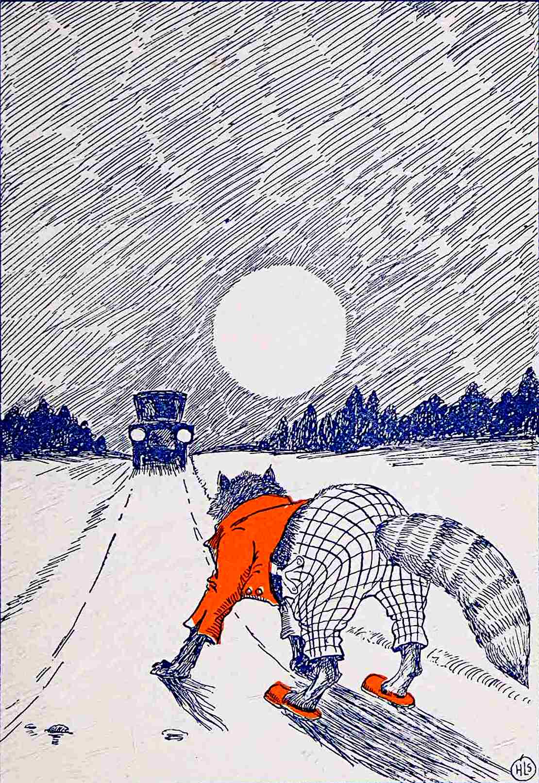 Mrs. Coon was puzzled. And she was somewhat alarmed, too. She wanted to see those strange tracks herself. So she told her other children not to step a foot out of the house until she came back. 109And then she asked Fatty to run along and show her where he had come upon the monster’s trail.