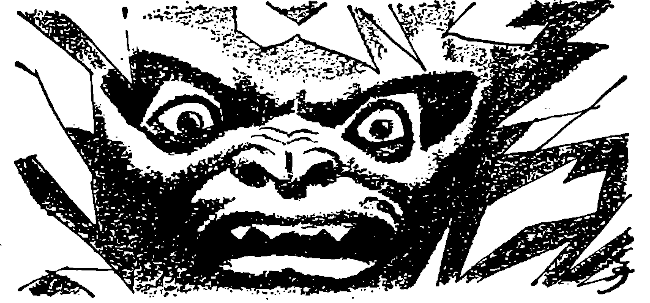 "Billie—I'm sorry! I never thought!" A crack showed at the edge of the door, and a roar smote their ears. Estra backed to the window. "Go!" he shouted. "Go quickly, while you can!"