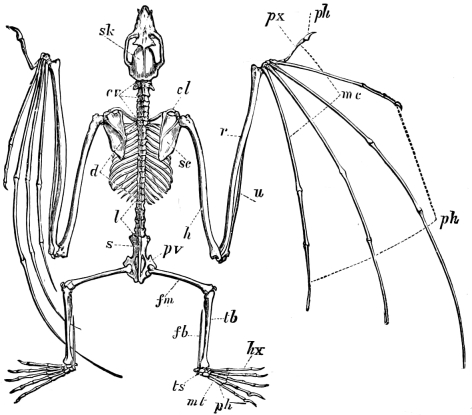 Fig. 8.—The Skeleton of a Flying-Fox, or Fox-Bat (Pteropus medius).
