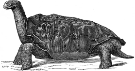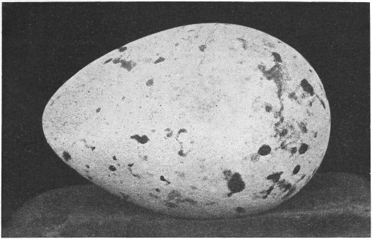 The south side of this room (right on entering) is chiefly reserved for the remains of extinct Birds, including the famous Lizard-tailed Bird (Archæopteryx) of the Solenhofen beds of Bavaria (fig. 48), the oldest known member of the class. Although presenting many Reptile-like characters, it had well-developed feathers on the wings and tail, the impressions of which are beautifully preserved in the specimen. A series of skeletons of the “Moas,” or Dinornithidæ, of New Zealand, birds in which no trace of a wing has been discovered, shows the diversity in size of different members of the group, some83 far exceeding any existing Ostrich, while others are scarcely larger than a good-sized Turkey. Some of these remains are so recent as still to be covered with dried skin, and even feathers. Several eggs are also shown; but, large as these are, they are greatly exceeded in size by those of the Roc (Æpyornis) from Madagascar. The skull and certain other remains of a gigantic extinct bird, Phororhachos, from Patagonia are also shown in this room. These birds appear to have been allied to the existing South American Seriema.