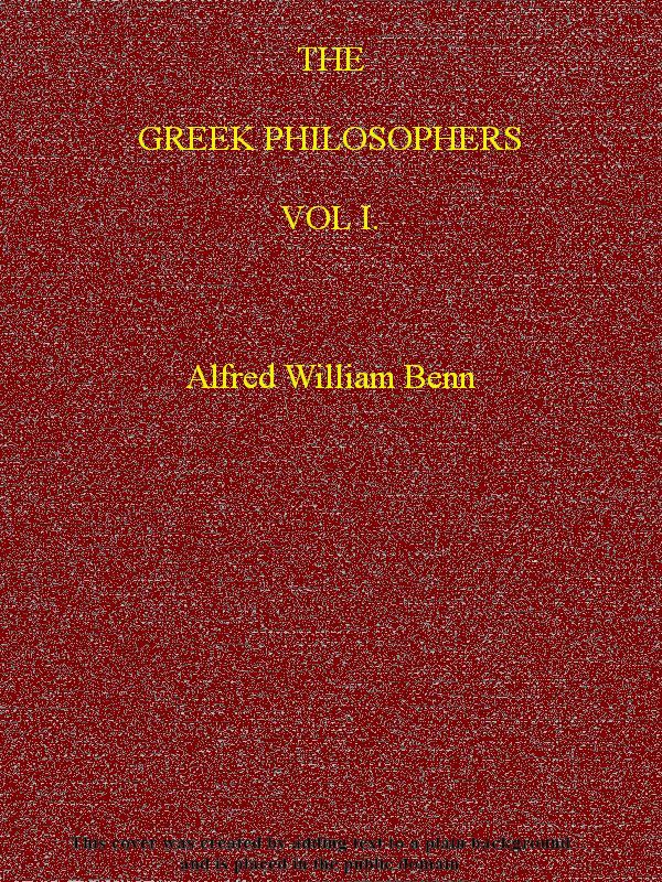 On the whole, I am afraid that my acquaintance with the modern literature of the subject will be found rather limited for an undertaking like the present. But I do not think that wider reading in that direction would have much furthered the object I had in view. That object has been to exhibit the principal ideas of Greek philosophy in the closest possible connexion with the characters of their authors, with each other, with their developments in modern speculation, with the parallel tendencies of literature and art, with the history of religion, of physical science, and of civilisation as a whole. To interpret all things by a system of universal references is the method of philosophy; when applied to a series of events this method is the philosophy of history; when the events are ideas, it is the philosophy of philosophy itself.