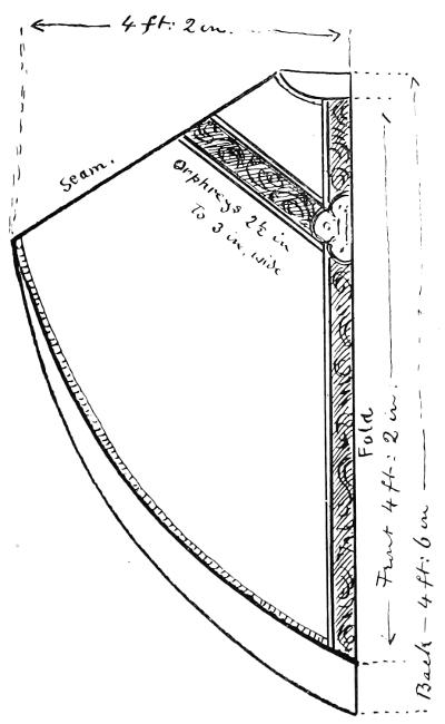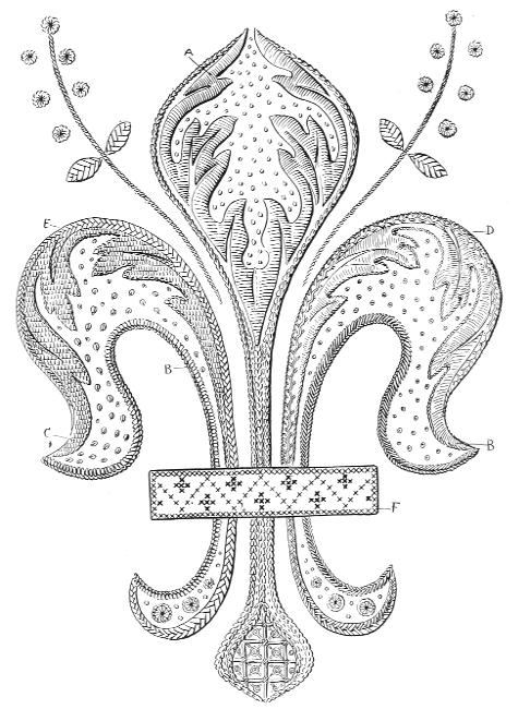 It is quite beyond the scope of such a manual as this to go into the History of embroidery in general, or even of this particular branch of it. On this point therefore I will say no more than that it is an undoubted fact that from the thirteenth to the fifteenth century English embroidery took a leading place throughout the whole of Christendom, and that from the fifteenth century onward embroidery began to decline as an art till it might almost be reckoned as lost to England until the middle of the nineteenth.