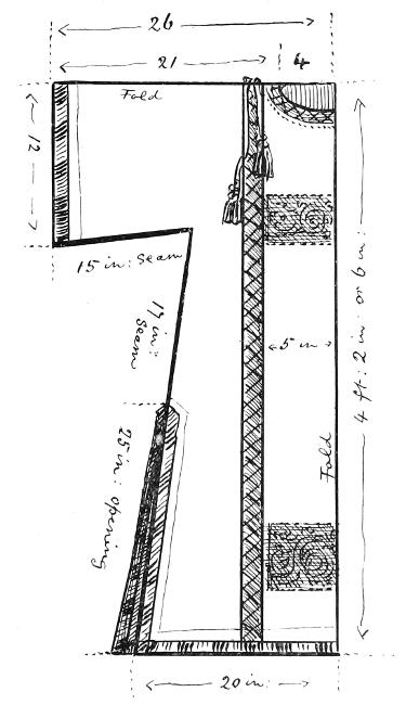 Brocade is too assertive to make a good background, but brocade, and even tapestry (where the design is suitable) may be outlined with gold or cord, or further enriched with embroidery with a truly glorious effect, when judiciously managed.