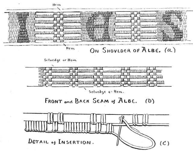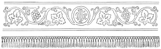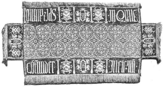 So with much willingness I contribute these few words of introduction. There must be many ladies to whom such a book as this—lucid, compact, and inexpensive—will be most welcome, enabling them to use their needles for the highest of purposes—the service of the Church and the beautifying of the Sanctuary. We all feel, I think, that such work, when fashioned by the hands of worshippers, has a worth and a significance, apart from its intrinsic value, which no ready-made article purchased from the ‘Church Furniture’ shop can possess. It is the concrete embodiment of love, self-denial, and reverence. It brings before our eyes an example of human talent consecrated to the highest ends. And it continues a tradition characteristic of the Christian Church throughout its history—one dating back, indeed, to those more ancient days when, in the language of the Book of Exodus, ‘All the women that were wise-hearted did spin with their hands, and brought that which they had spun, both of blue, and of purple, and of scarlet and of fine linen,’ for use and adornment in the Tabernacle of God.