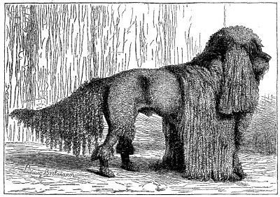 My own stroll through this tail-wagging assembly set me to remembering some dogs with whose acquaintance I have been honored. For are there not dogs whom, like people, it is an honor to know? First of all came to my mind Nero, whose picture you see above. Nero was a Berlin dog—is still, I hope. Strange to say, he spoke German no better than English, yet we became capital friends, and many a long romp have we had together on his master's lawn in —— Strasse. Nero is not merely a clever but a very rare dog. His wonderfully odd black coat gave him the first prize at a Berlin dog show as the most perfect specimen of a German "corded-coated" poodle there. Moreover, that same long hair curls naturally, and neither Nero nor his master spends any morning hours with the curling-stick.
