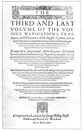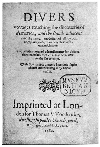 Fac-simile of Title-page of the Third, or American, Volume of Hakluyt’s “Voyages,” Edition of 1598–1600 32