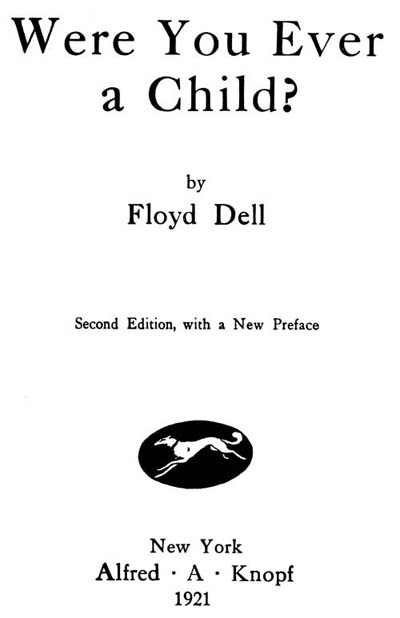 The Project Gutenberg EBook of Were You Ever a Child?, by Floyd Dell This eBook is for the use of anyone anywhere in the United States and most other parts of the world at no cost and with almost no restrictions whatsoever. You may copy it, give it away or re-use it under the terms of the Project Gutenberg License included with this eBook or online at www.gutenberg.org. If you are not located in the United States, you'll have to check the laws of the country where you are located before using this ebook. Title: Were You Ever a Child? Author: Floyd Dell Release Date: September 22, 2018 [EBook #57949] Language: English Character set encoding: ISO-8859-1 *** START OF THIS PROJECT GUTENBERG EBOOK WERE YOU EVER A CHILD? *** Produced by ellinora, David E. Brown, and the Online Distributed Proofreading Team at http://www.pgdp.net (This file was produced from images generously made available by The Internet Archive/American Libraries.)