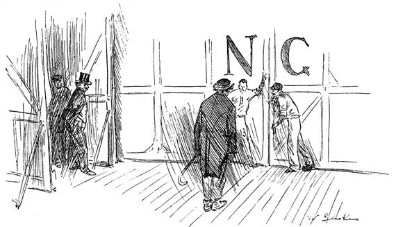 However, these long, roofed docks of famous Cunarders and American and White Star Liners, and of the French steamers (which have a round roof dock of a sort all their own) are interesting in their way, too, and the names of the foreign ports at the open entrance cause a strange fret to be up and going; especially on certain days of the week when thick smoke begins to pour from the great funnels which stick out so enormously above the top story of the now noisy piers. Cabs and carriages with coachmen almost hidden by trunks and steamer-rugs crowd in through the dock-gates, while, within, the hold baggage-derricks are rattling and there is an excited chatter of good-by talk....