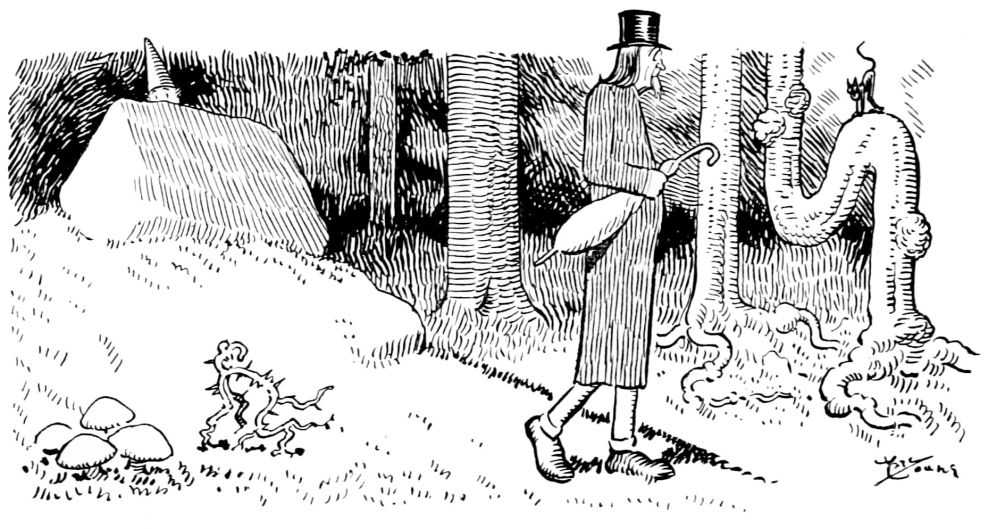 Passing through a gloomy ravine, Mr. Hunt’s curiosity is aroused by a sound of fiendish revelry.