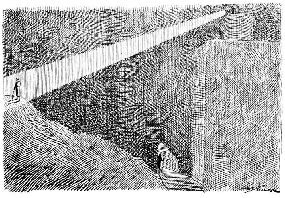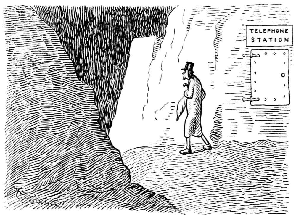 On passing through the long entrance corridor Mr. Hunt hears a low mutter as of thunder, which grows louder as he advances.