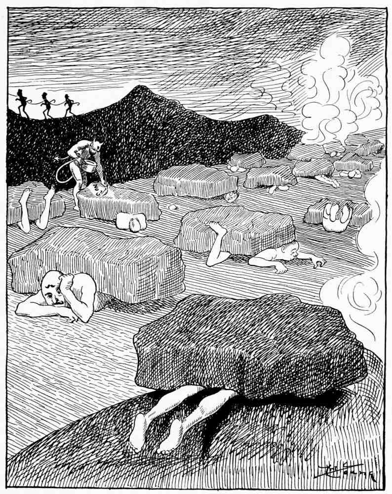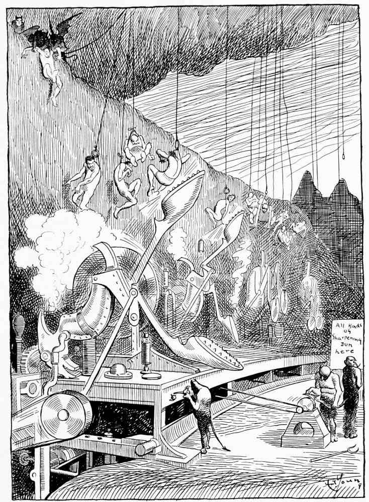 Taking his way down the rugged slope Mr. Hunt comes to the hot region where people who took no pride in their work are punished.