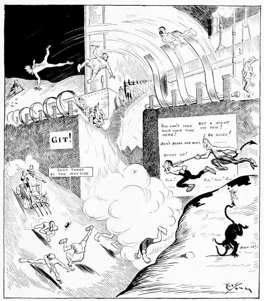 Following the direction of the noise he comes into that region which, according to his guide book, is occupied by the “fools of success.”