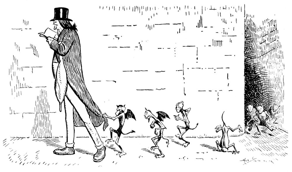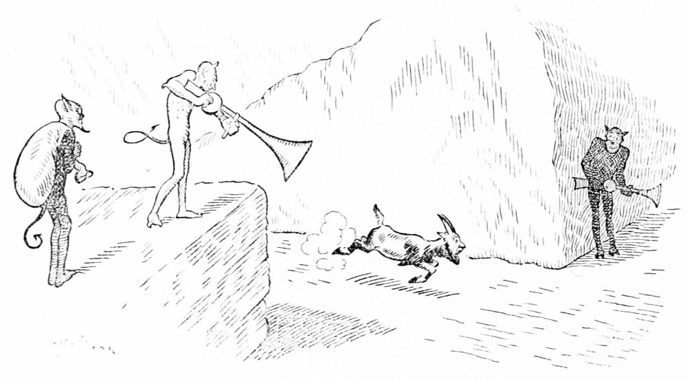 This volume contains seventy sketches and a dozen full-page pictures now printed for the first time. It also includes most of the drawings originally published in “Hell-up-to-Date.” Others were published in the “Cosmopolitan Magazine,” and a few were printed in the New York “Evening Journal” and “Judge.” Acknowledgment is due the Editors of the publications mentioned for permission to reprint them in book form.