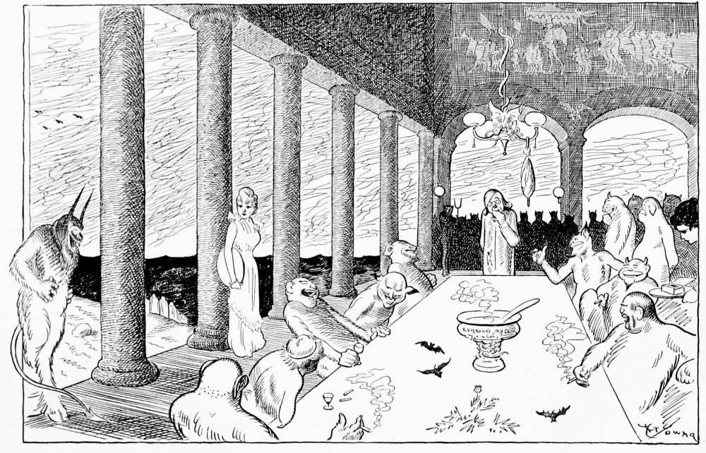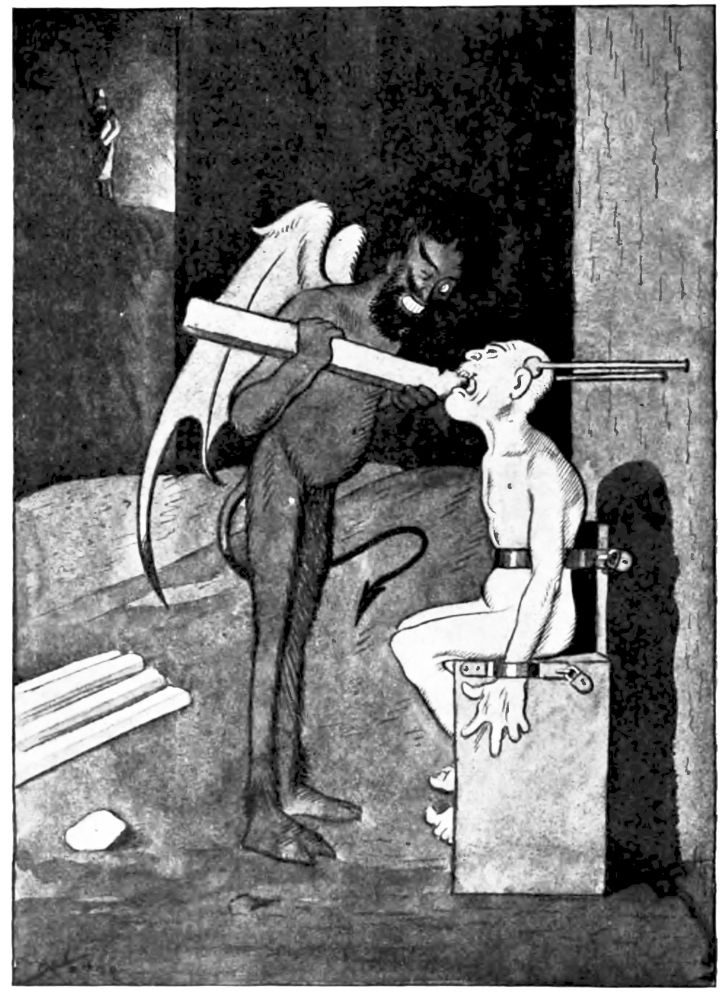 Perhaps it is unnecessary to add that the author has taken many liberties with Mr. Hunt’s text. The condition of the documents necessitated certain guess-work, and he has freely added a number of Inferno pictures that were drawn long before Hiprah Hunt’s valuable papers came to his notice.