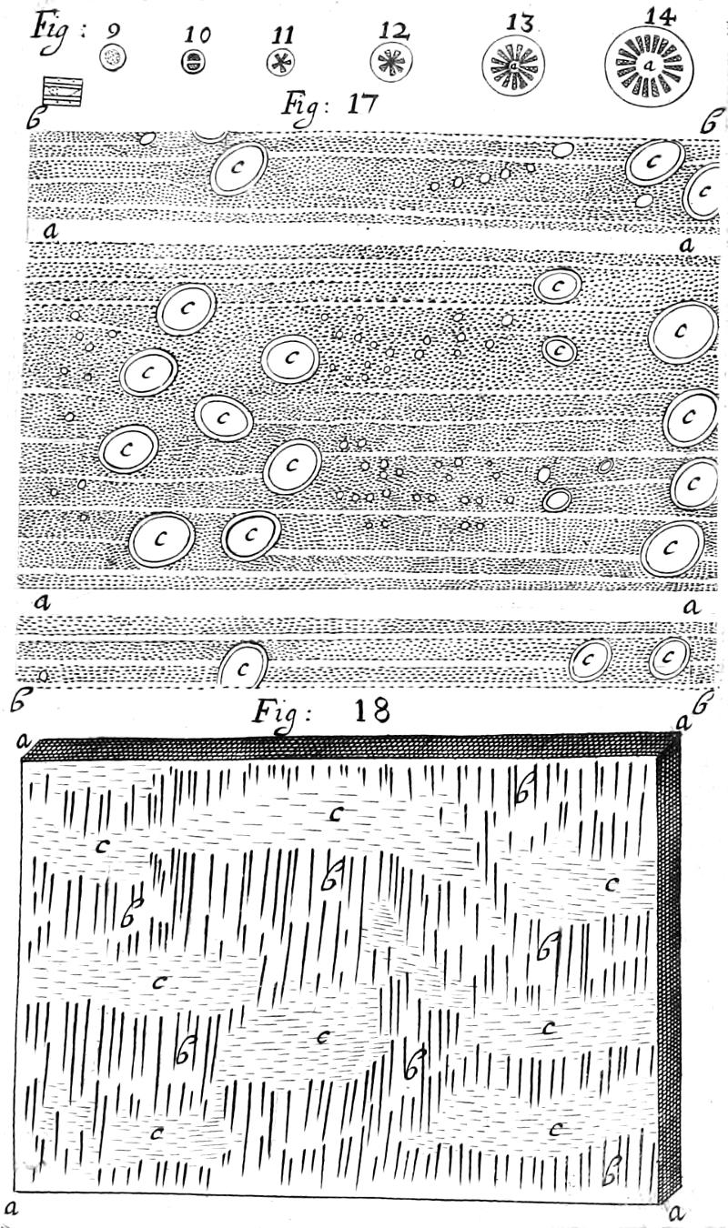 The Skin hereof, its Original. 37. The Cortical Body, its Original. 37. Description. 37, 38. Pores. 38. Proportions. 39. The Lignous Body, its Original. 39. Described by its Pores, 40. Its Proportions. 42. The Insertment, its original. 42. Description. 43. Pores. 43. Number and size. 44. A fuller description hereof, with that of the Osculations of the lignous Body. 44, 45. The Pith, its original sometimes from the Seed. 46. Sometimes from the Cortical Body. 47, 49. Its Pores. 49. Proportions. 49, 50. Fibres of the lignous Body therein. 50. The Pith of those Fibres. 51.