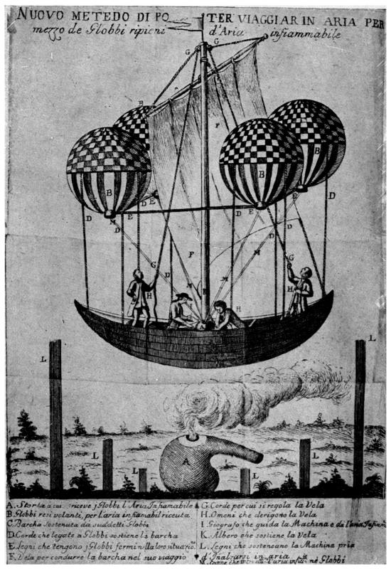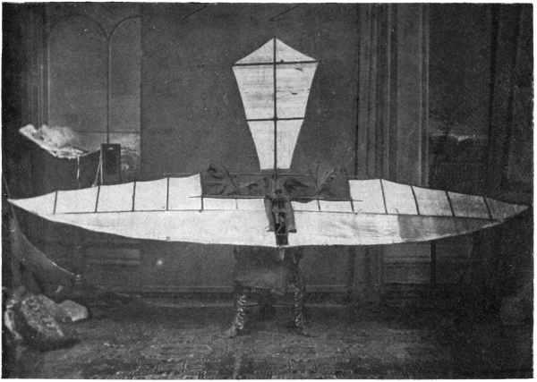 In a study of the first beginnings of the art, it is worth while to mention even the earliest of the legends and traditions, for they show the trend of men’s minds and the constancy of this dream that has become reality in the twentieth century. In one of the oldest records of the world, the Indian classic Mahabarata, it is stated that ‘Krishna’s enemies sought the aid of the demons, who built an aerial chariot with sides of iron and clad with wings. The chariot was driven through the sky till it stood over Dwarakha, where Krishna’s followers dwelt, and from there it hurled down upon the city missiles that destroyed everything on which they fell.’ Here is pure fable, not legend, but still a curious forecast of twentieth century bombs from a rigid dirigible. It is to be noted in this case, as in many, that the power to fly was an attribute of evil, not of good—it was the demons who built the chariot, even as at Friedrichshavn. Mediæval legend, in nearly every case, attributes flight5 to the aid of evil powers, and incites well-disposed people to stick to the solid earth—though, curiously enough, the pioneers of mediæval times were very largely of priestly type, as witness the monk of Malmesbury.
